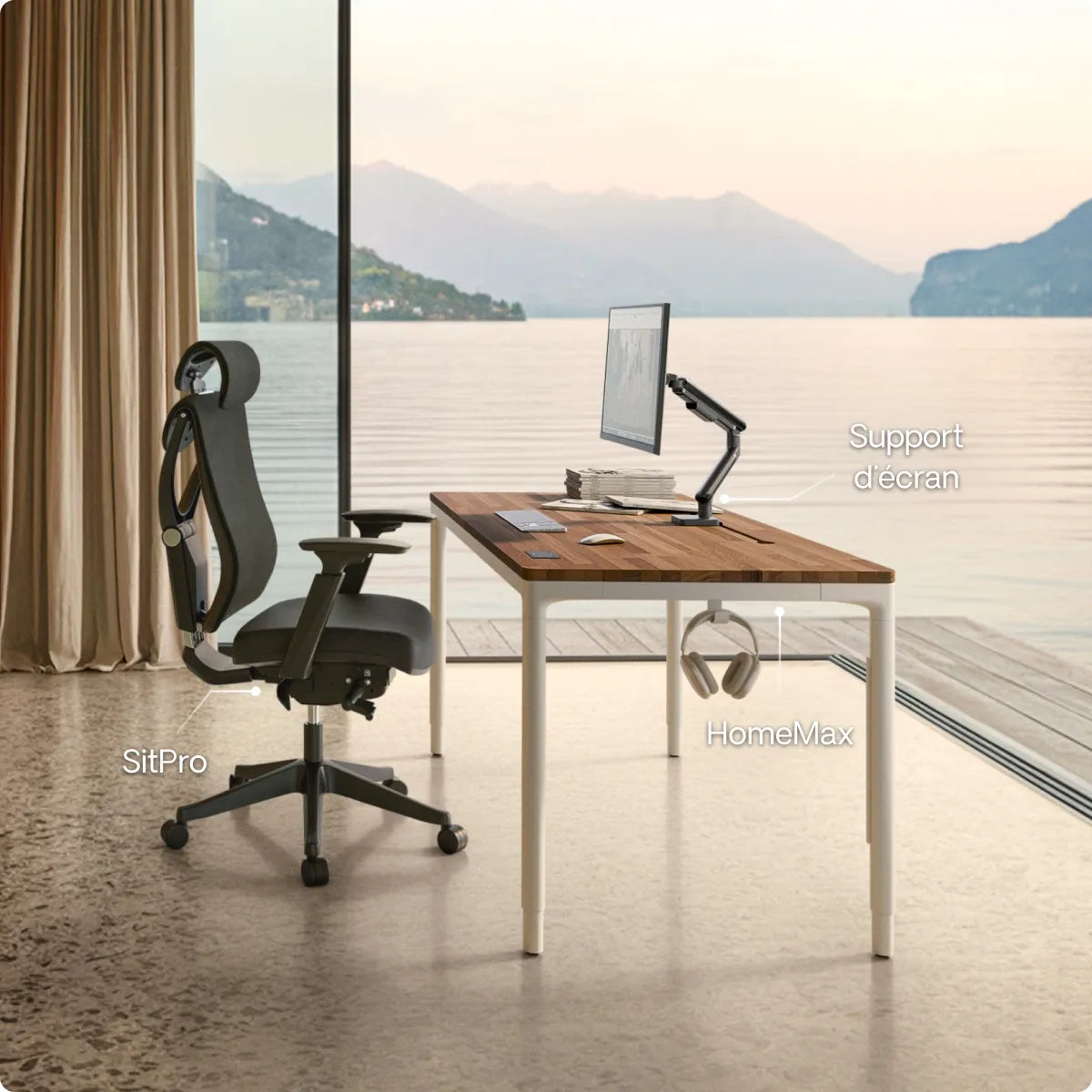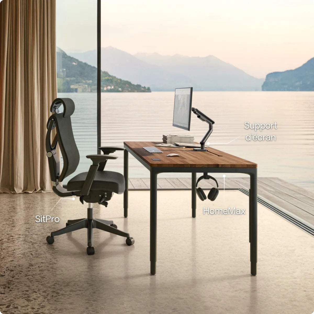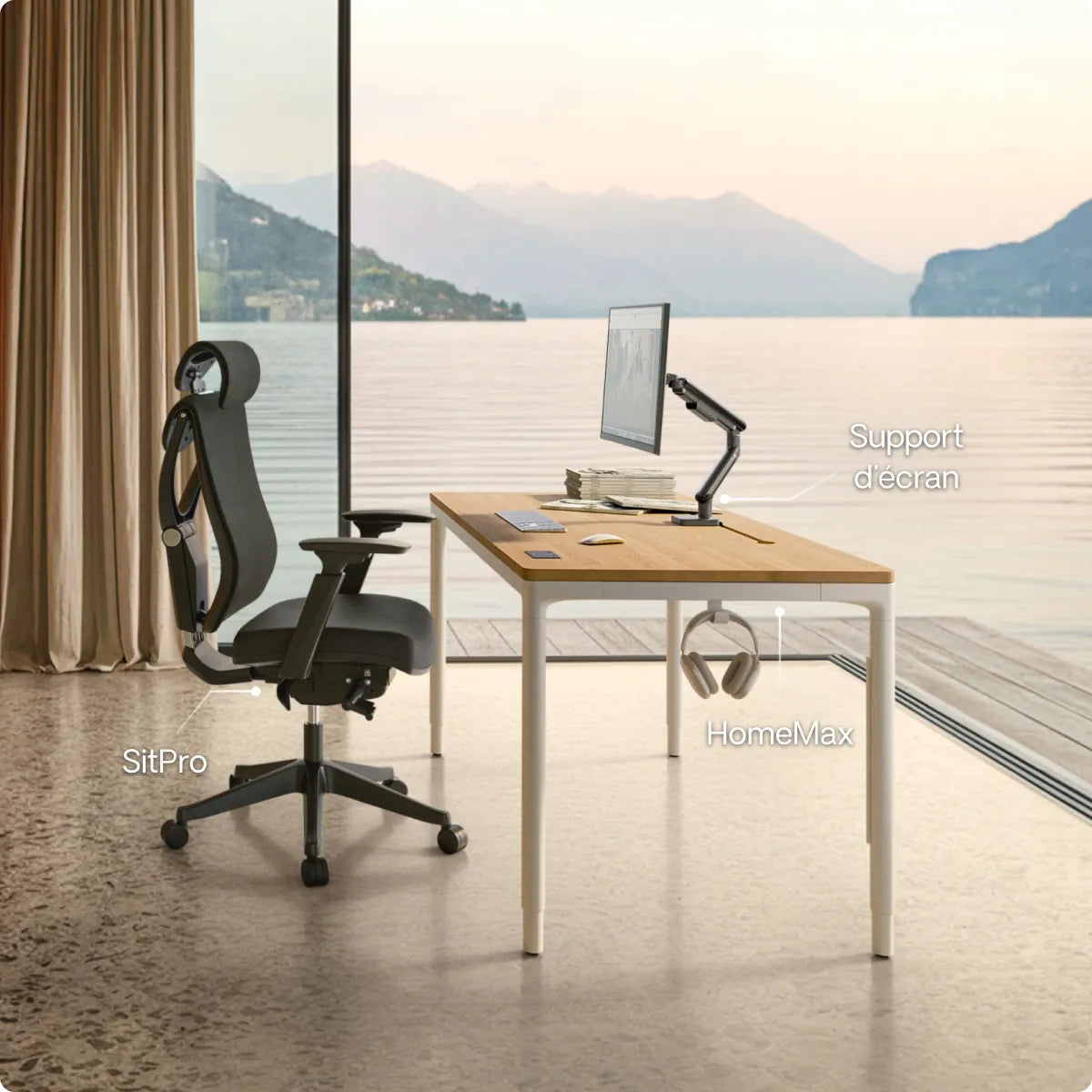 Grâce à ses pieds métalliques robustes et à son cadre renforcé, HomePro reste parfaitement stable quelle que soit la hauteur ou la taille du plateau. Vous n'avez donc pas à craindre que votre écran tremble ou que votre tasse de café se renverse.