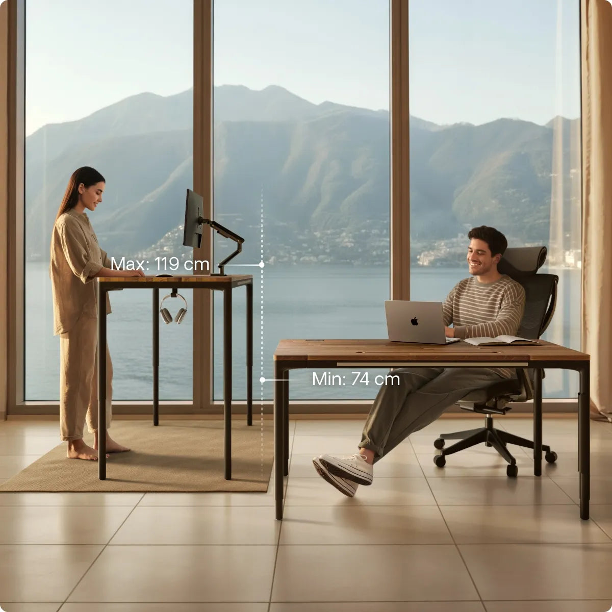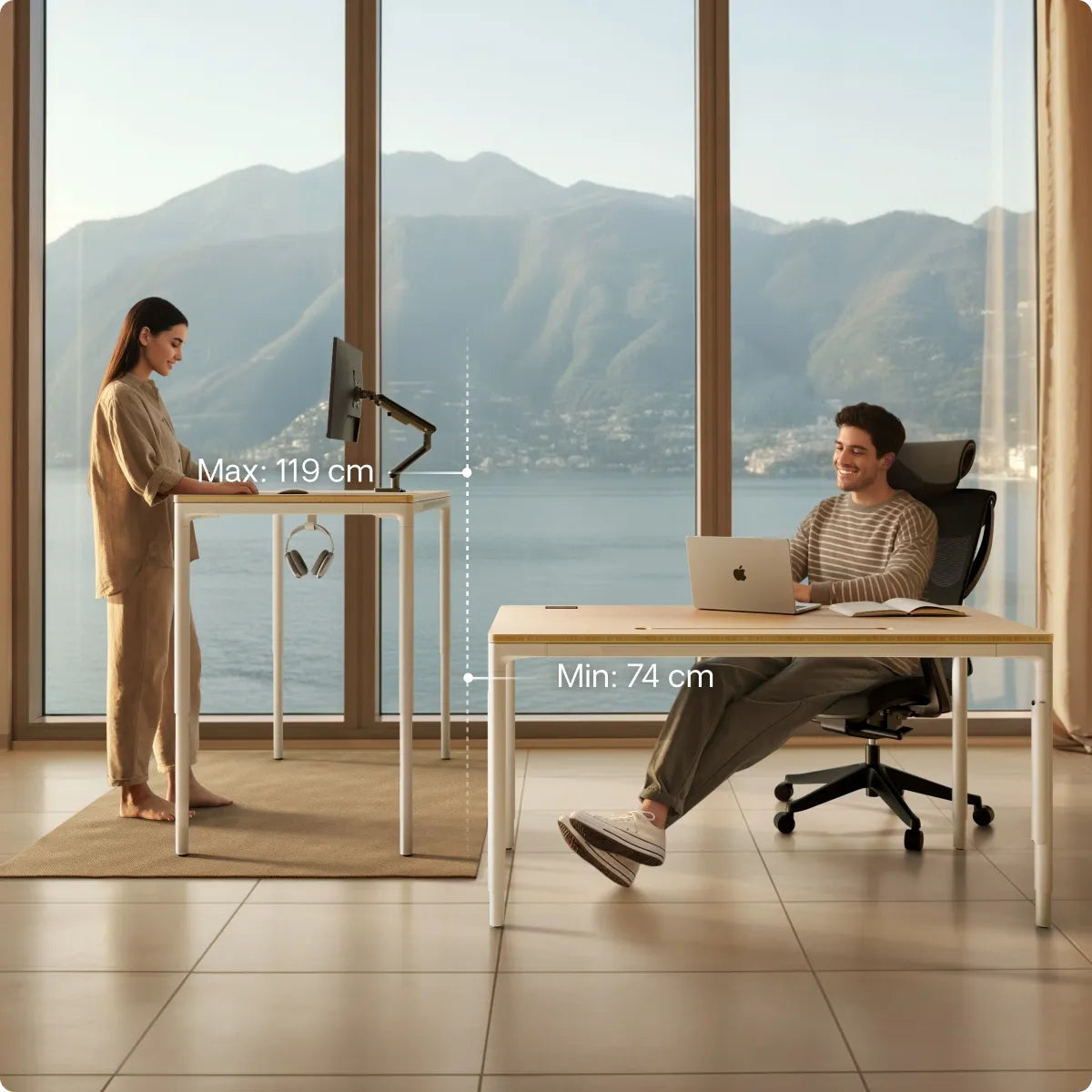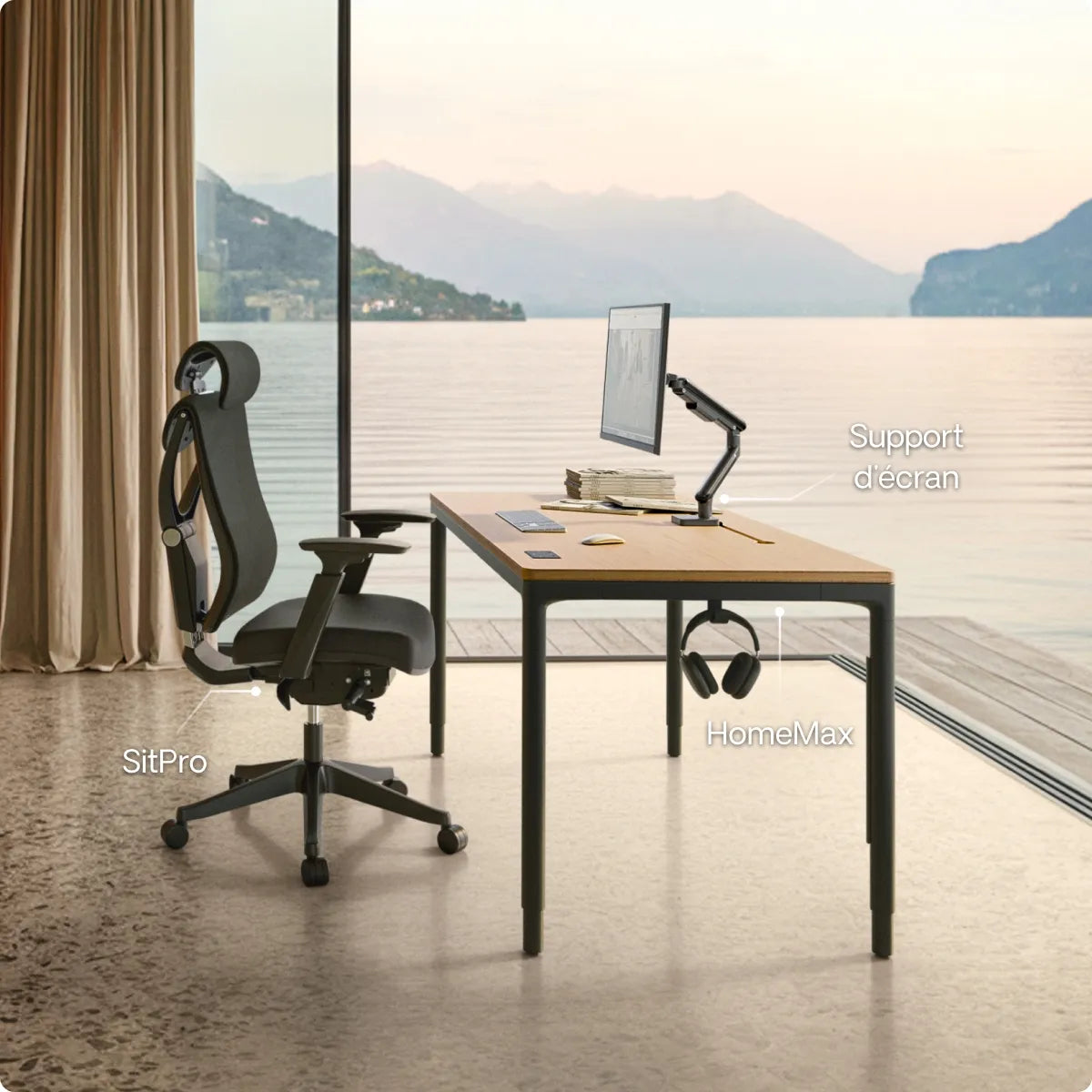 Grâce à ses pieds métalliques robustes et à son cadre renforcé, HomePro reste parfaitement stable quelle que soit la hauteur ou la taille du plateau. Vous n'avez donc pas à craindre que votre écran tremble ou que votre tasse de café se renverse.