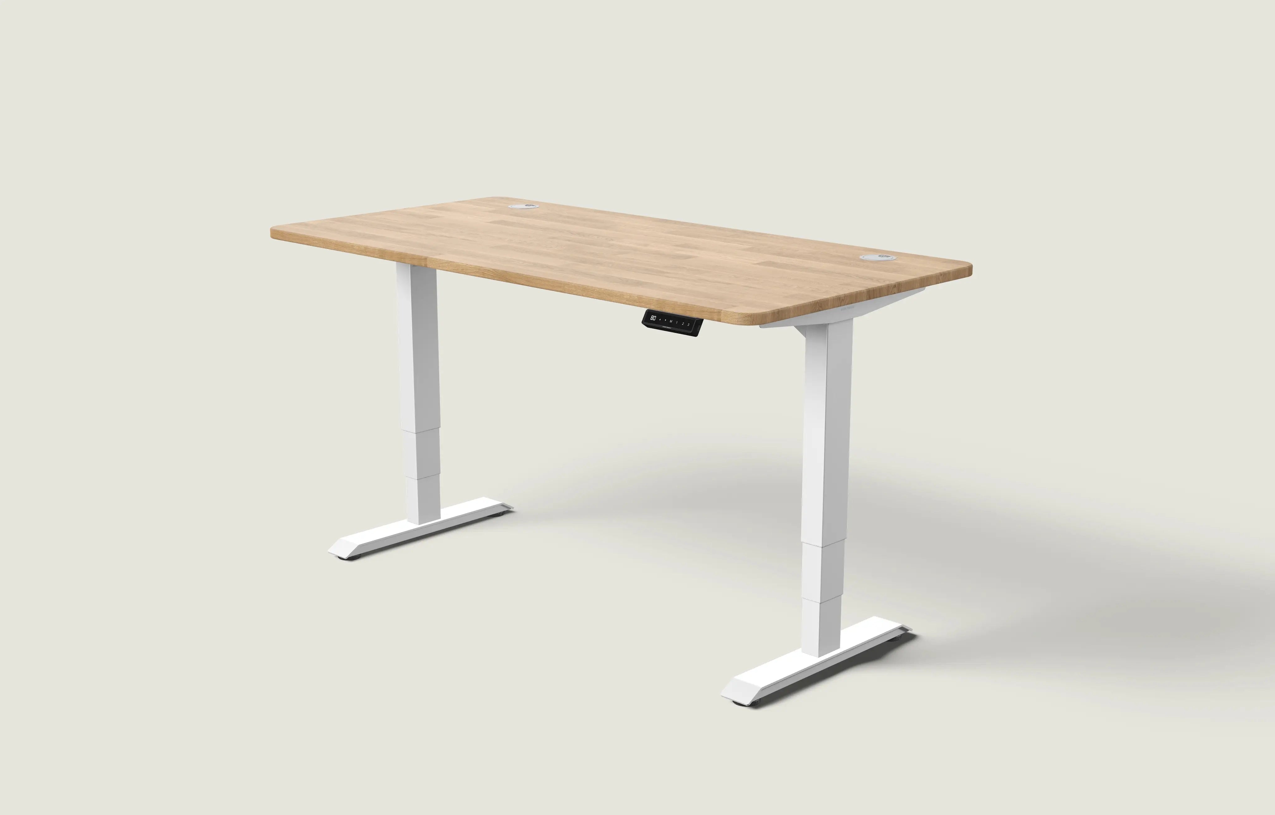 Les bureaux ergonomiques Desktronic offrent des options de réglage pratiques. Un écran tactile électronique affiche la hauteur en centimètres et vous permet de monter ou descendre le bureau sans effort à l'aide d'un double moteur intégré. Ils disposent aussi de trois préréglages de hauteur entièrement programmables, ce qui vous permet de retrouver votre position préférée d'une simple pression.