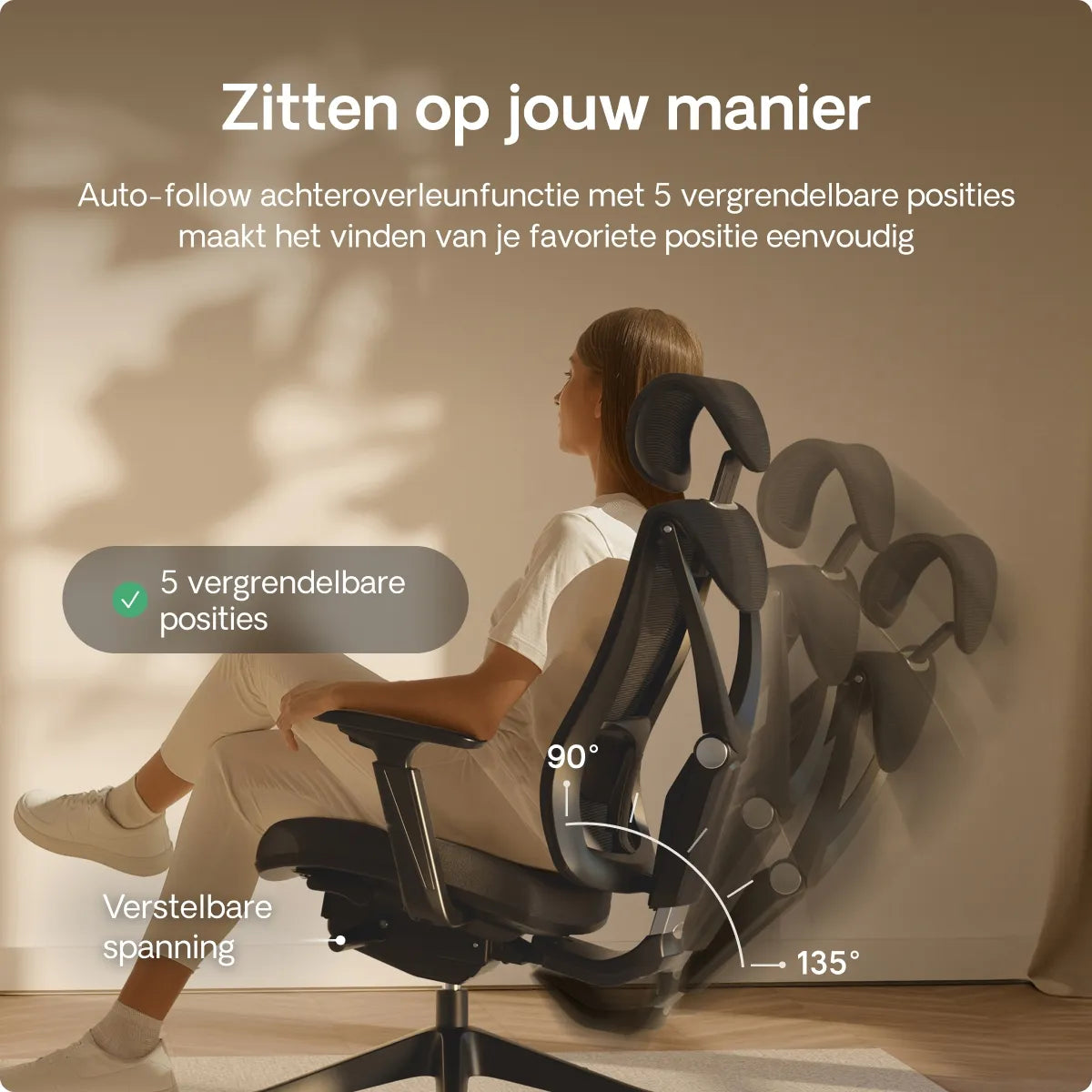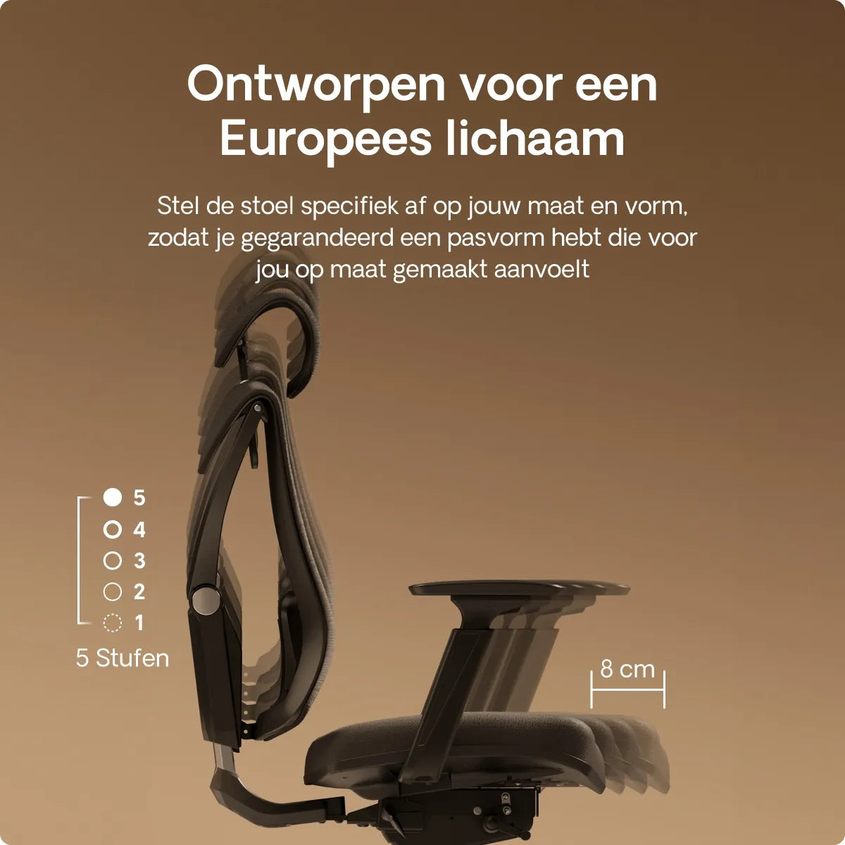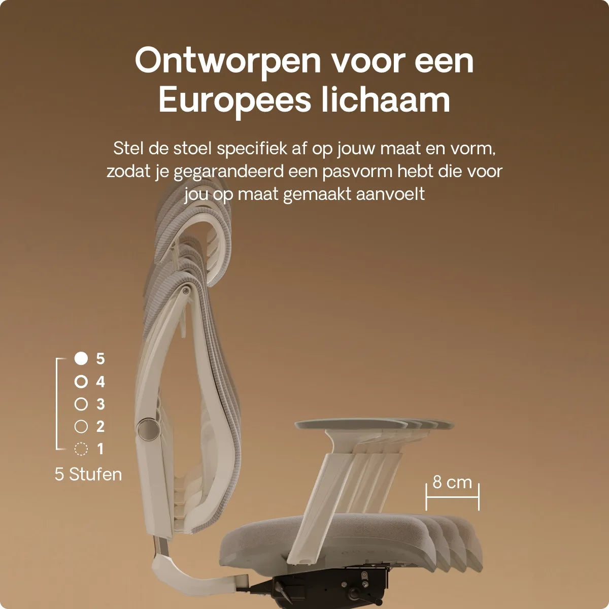 Ontworpen met de focus op comfortabel en ondersteunend zitten dat een goede houding bevordert. Het houdt het lichaam in een natuurlijke houding, vermindert het risico op spierklachten en verbetert het algehele welzijn.
