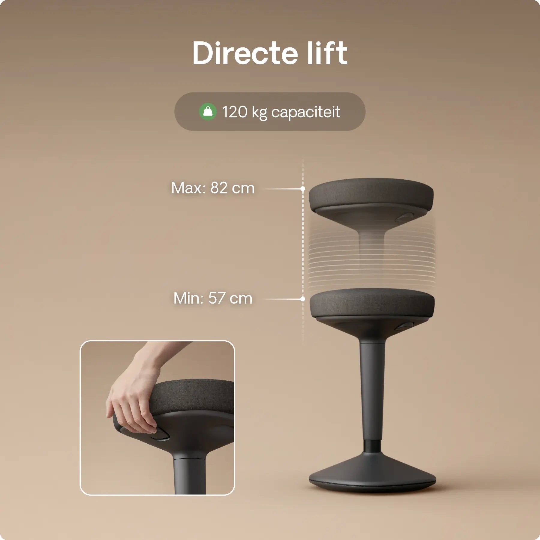 Zowel als. Hij is gemaakt voor actief zitten tijdens geconcentreerd werk en voor korte pauzes, zodat je productief en comfortabel blijft. Met ergonomische ondersteuning voor de hele dag is de kruk geschikt voor zowel kort als langdurig gebruik.