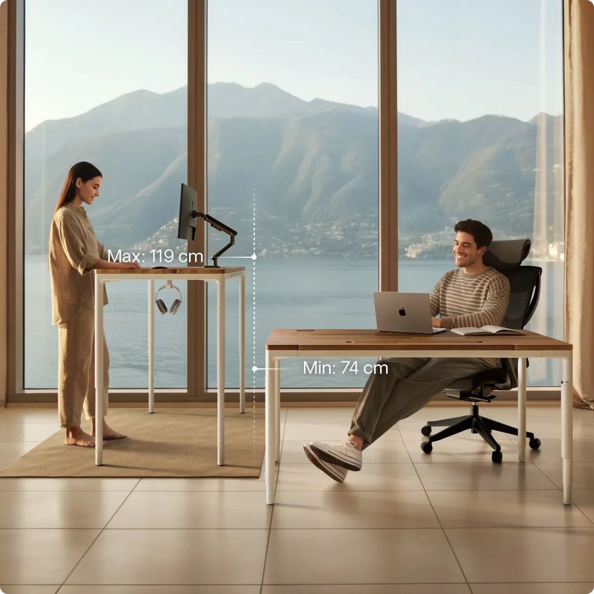 Ervaar bijna onmiddellijke hoogteaanpassingen met slechts één aanraking, want de tafel bereikt moeiteloos de gewenste hoogte met 30 mm/s.