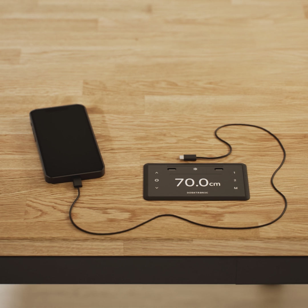 Het bureau is ontworpen met een intuïtief aanraakscherm. Je kunt tot 3 hoogte-instellingen opslaan met de presets in het geheugen, zodat je er gemakkelijk tussen kunt wisselen. Houd je apparaten opgeladen en toegankelijk met de ingebouwde USB en USB-C oplaadpoorten.