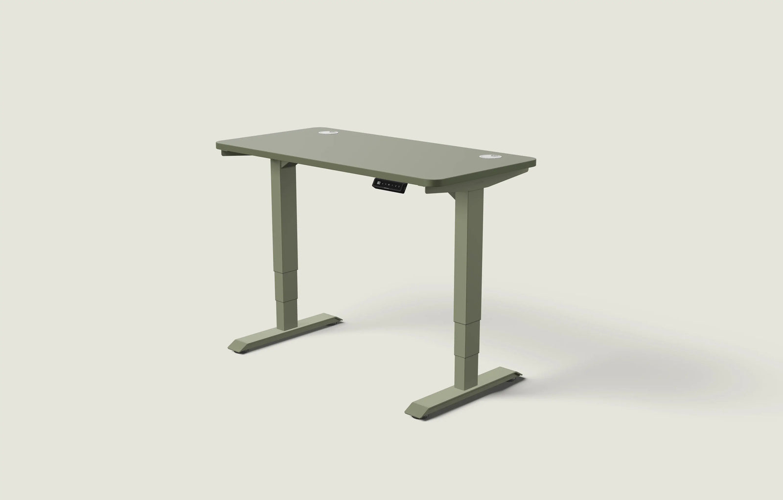 De ideale bureauhoogte is persoonlijk, maar een algemene richtlijn is dat je bureau op ellebooghoogte moet staan als je zit en dat de bovenkant van je beeldscherm op ooghoogte moet staan om overbelasting te voorkomen. Als je staat, moet je bureau op één lijn staan met je gebogen ellebogen.